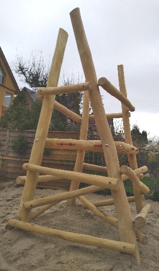 Kletterbaumaus Robinienholz, entsplintet und geschliffenindividuelle Gestaltung- mit Kletternetz- KlettersprossenKrative GestaltungPreis auf AnfrageÄnderungen vorbehalten