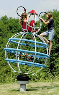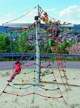 Das Gerät bietet vielfältige Anreize zum Klettern in seinen verschiedenen Formen. Nach erfolgreichem Aufstieg laden Netze zum Ausruhen und "Plauschen unter Gipfelstürmern" ein