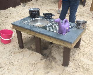 Spültisch, KinderspüleKinder möchten gerne das machen,wir Ihnen vor machen.Schöne Ergänzung zur FeldkücheGröße: ca. B/L ca. 70 x 120 cmTisch aus Recycling-KunststoffSpüle mit Ablauf aus EdelstahlPreis auf AnfrageÄnderungen vorbehalten