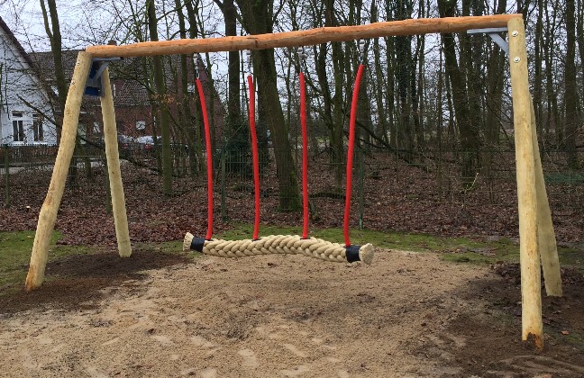 Trioschaukelaus Robinienholz, entsplintet und geschliffenViel Spaß beim Schaukeln, eine sehr beliebte SchaukelHöhe: ca. 2,30 - 2,40 mFallhöhe: 1,45 mSicherheitsbereich: 4,50 x 8 mPreis auf AnfrageÄnderungen vorbehalten