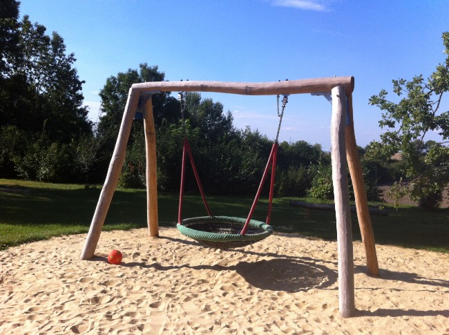 Vogelnestschaukelaus Robinienholz, entsplintet und geschliffenOriginal Vogelnestkorb Durchmesser 1,20 mGelenkhaken aus Edelstahl mit FangkettePreis auf AnfrageÄnderungen vorbehalten